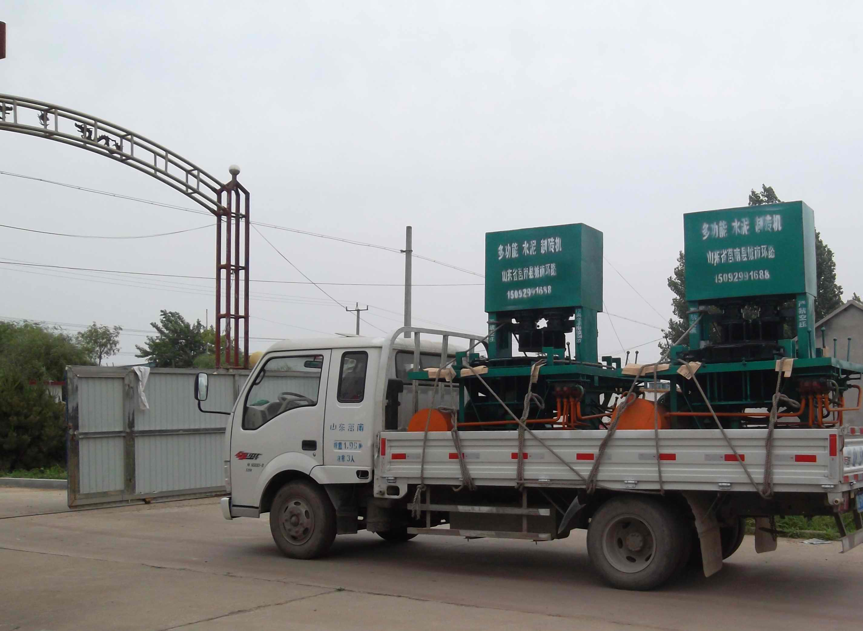 花磚機,山東彩磚機,水泥墊塊機,支撐墊塊機,墊塊機設備,護坡磚機,透水磚機,莒南縣眾鑫機械有限公司注冊商標:華工磚機!